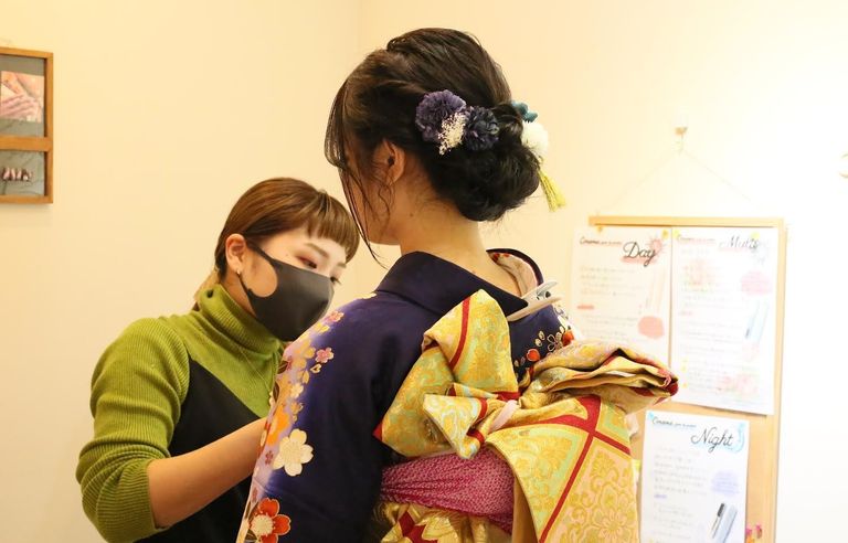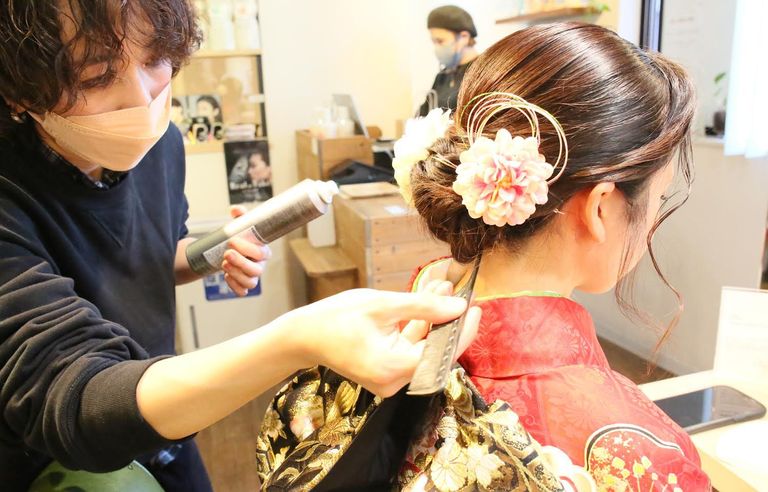 お客様がご来店されるため、着付けやヘアメイクなど