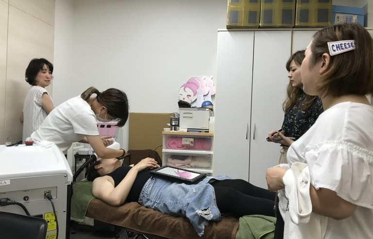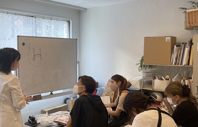 技術講習後はモデルを使用したレッスンなど