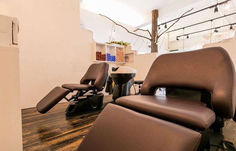 フルフラットのシャンプー台と落ち着いた空間で